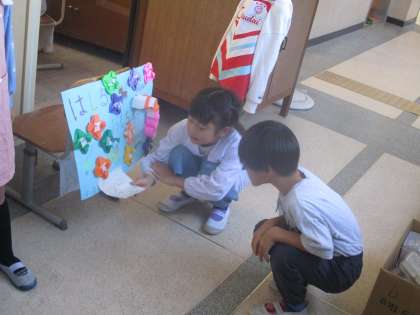 1年生に遊び方が伝わるように、目線を合わせてわかりやすい言葉で話したり、実際にやって見せたりする姿がとても素晴らしかったです。