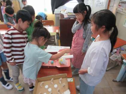生活科「あそんで ためして くふうして」で作ったおもちゃを使って