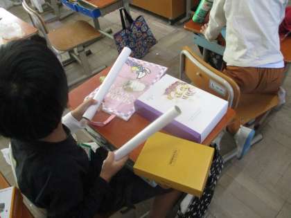 学習発表会では、それぞれが作った楽器が登場します。楽しみにしていてください。