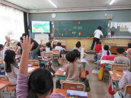 いろいたをならべて、形をつくりました。何枚使うのか、考えました。