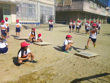何回も何回も跳んで,自分の記録を越えるためにがんばっています。