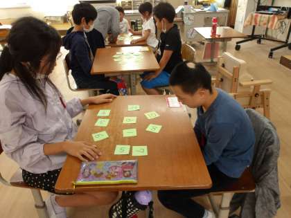 6くみは、みんなで楽しく英語活動の学習に取り組んでいます。色や数字などの英語での言い方を確認した後は、ポインティングゲームをはじめとした様々なゲームに挑戦です!!