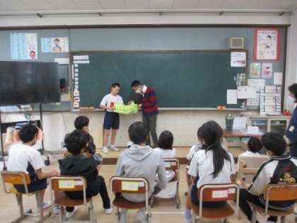 6くみの図書委員会の友だちも、委員会の仲間と一緒に、6くみのみんなに読み聞かせをしてくれました。
