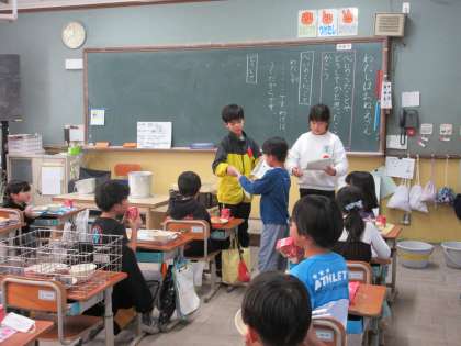 飼育委員会 マロンちゃん似顔絵大会の参加賞を渡しました