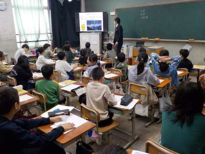 総合的な学習の時間では、自分たちのまちの自然災害や、自然災害に対して自分たちにできることを考える学習を進めています。