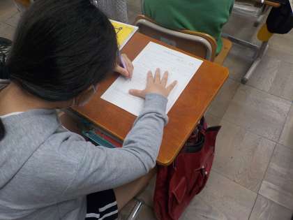身近で起こった自然災害の写真も交えながらお話いただき、子どもたちも「何かしていかないと」という気持ちで、一生懸命取り組んでいました。