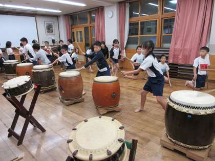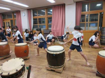 部活動和太鼓は、久しぶりの練習でした。忘れていたリズムを、覚えている子どもがひっぱってくれて、思い出すことができました。思い出したら元気いっぱい。楽しく和太鼓の練習をしました。