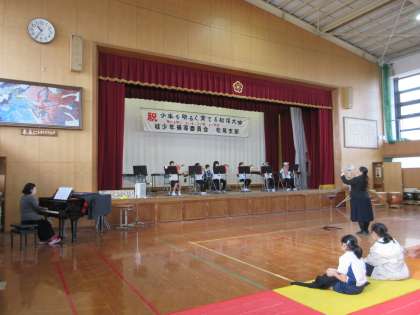 MMCの発表。今年から始めた金管楽器の演奏もありました。がんばって練習した成果を発表しました。
