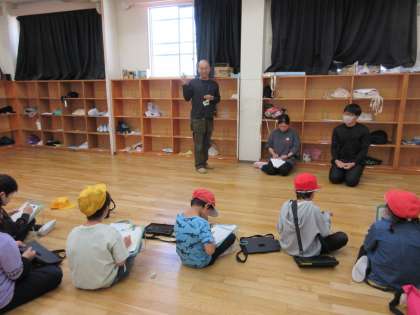 秋のまちたんけんをしています。児童館に行ったときは、なかよしの先生に会えてうれしさいっぱいの子どもたちでした。用意していた質問の他に、たくさんの質問をして、とても熱心にインタビューをする様子が見られました。最後には、先生にたっぷり甘える姿も見せていました。