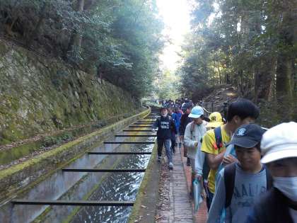 北にむかって水が流れているなんてすごいな〜と子どもたち。