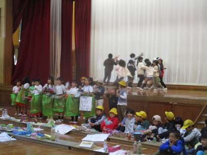 今日は学習発表会がありました。国語や算数、図工、英語など、様々な教科で学習したことが盛りだくさんの劇を行いました。