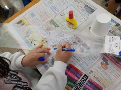 袋に絵を描いたり、袋が入っている紙コップに飾りをつけたりして