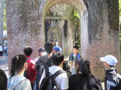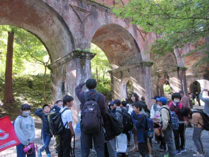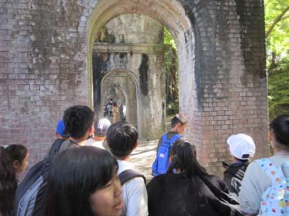 水路閣の穴の大きさのひみつもわかって、「すごいすごい!」と言いながら、じっくり観察しました。