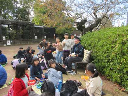 みんなで楽しく食べました。「外でお弁当食べるのって、おいしいよね。」と子どもたちが話していました。