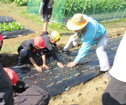 これから苗を植える土の温度を手で感じるひとときもありました。