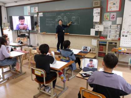 6くみでは図画工作科の時間にサツマイモを持った自分の姿を絵にしました。