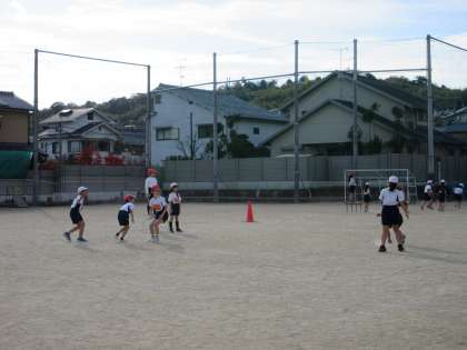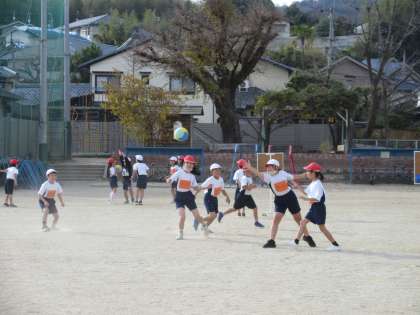 体育ではポートボールをしました。ゲームを見ている人も、「パスパス!」「○○さんがあいてるよ」など、こえをかけていました。だれにパスを回すとよいか考えながらプレーをしていました。楽しく活動しました。