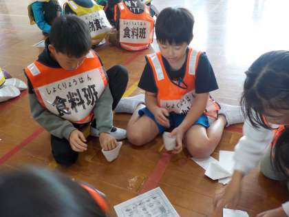 どんな順番で食事を配るか考えたり,新聞紙で紙コップをつくったりすることもできました。