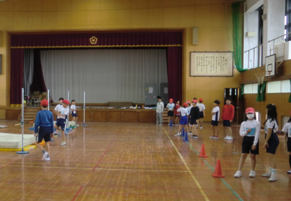 4年生の体育科の学習では,「高跳び」の学習を行っています。この学習では,3歩や5歩のリズムで助走し,バーを落とさないように跳んでいきます。多くの児童にとって初めての運動になるので,学習開始時はなかなか難しそうでしたが,慣れてくると少しずつ跳び越えられるようになり,嬉しそうな様子でした。