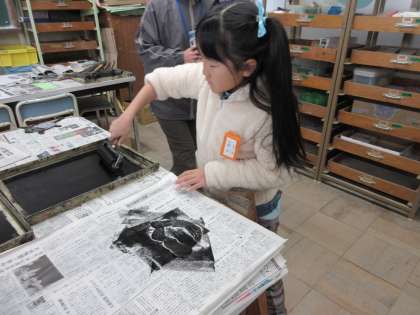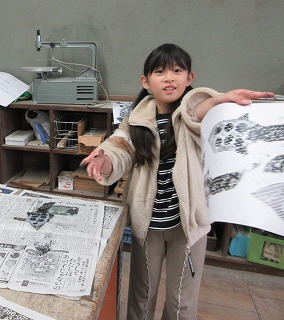 「見て見て!」と言って見せてくれる子もいました。版がどのように写ったのか、和紙をめくってみてのお楽しみです。版に写る面白さを味わいながら活動できました。