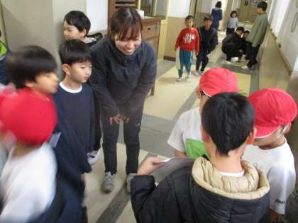 1年生だけでなく、高学年や先生にも伝えにいく姿が見られました。嬉しそうに自分のお気に入りの場所の紹介をする様子がとっても素敵でした。