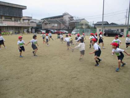 体育の時間には、すもうあそびとおにあそびの学習がスタートしました。いろんなルールで鬼ごっこを楽しんだり、すもうあそびを楽しんだりしています。