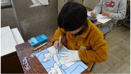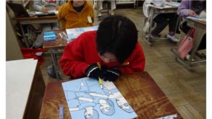 版画の学習を進めています。マツリンピックでの演技の頑張りを版画にしています。図工展で展示する予定にしていますので、楽しみにしていただけたらと思います。