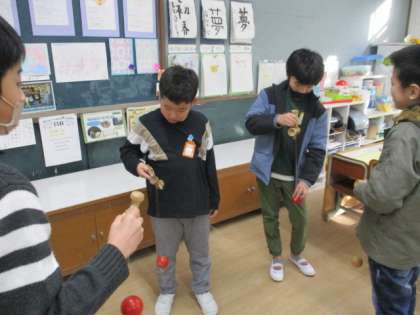教室では、けん玉や坊主めくりを楽しみました。