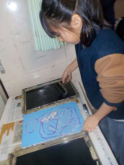 きれいに模様が印刷されると、「おぉ〜!!」と嬉しそうに作品をながめていました。