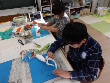 6くみでは、みんな1人1人、一生懸命、作品制作に取り組んでいます。