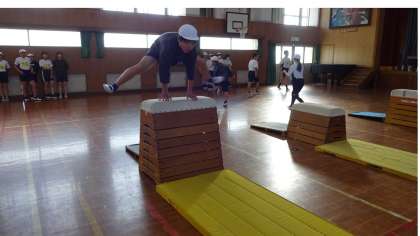とび箱運動を始めました。どうすればよりよく跳べるかを考えながら、様々な跳び方に挑戦してほしいです。