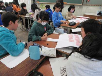 SNSをどのように使ったらよいか、グループで話し合いました。「相手の気持ちを考える」「自分がおくられていやなものは送らない」「直接話す」など、いろいろな考えが生まれました。SNSを使うときに大切なことを、たくさん考えることができました。