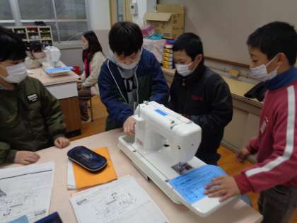 5年生家庭科で初めてミシンに触れ、使い方について学びました。