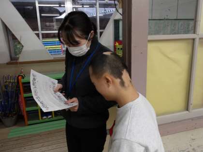 招待状を手渡した先生たちからの温かい言葉を聞いて、にっこり笑顔の6くみのみんなでした。