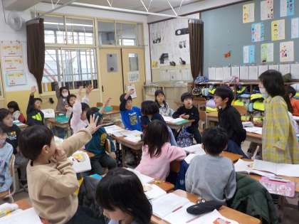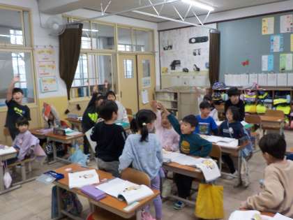 国語「ことばを 見つけよう」の学習でクイズをしました。
