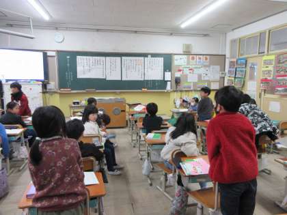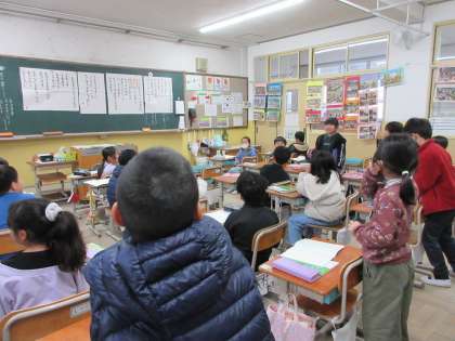いろいろな詩を読んで、詩をかくコツを考えました。「見たこと・感じたこと」「その事物になりきって」「事物に話しかけるように」などの書き方があることや、様子を表す言葉を使うといいこと、最後の一文を考えること、題名を工夫することなどのコツを見付けました。「よくみて」「もっとよく見て」「もっともっとよく見て」書くといいこともわかりました。「書けそう」「書いてみたい」という声が出てきました。