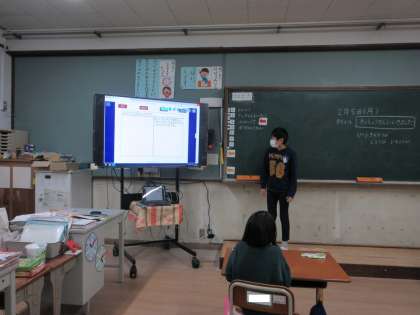 まとめたことを、教室のテレビに映して、みんなに見せながら発表しました。みんな、しっかり発表することができました。