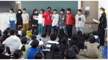 学年集会を行いました。各クラスの今月のめあてを交流し、京キッズRUNに出場した子に記録証を渡しました。残りわずかの小学校生活を楽しんでほしいです。