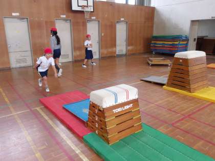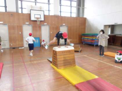 6くみは体育科で跳び箱の学習に取り組んでいます。
