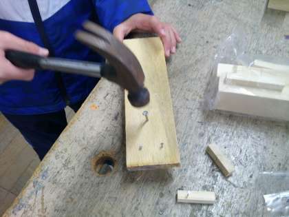作品展に展示する「くぎうちトントン」の作品を作り始めました。