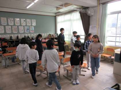 いすとりゲームや何でもバスケット、ジェスチャーゲームやばくだんゲーム、それぞれの部屋で、学年の垣根を越えて楽しそうに遊んでいました。じゃんけんをすることも大いに楽しむ子どもたちの様子が見られました。上級生が下級生にやさしく接していた姿が印象的でした。