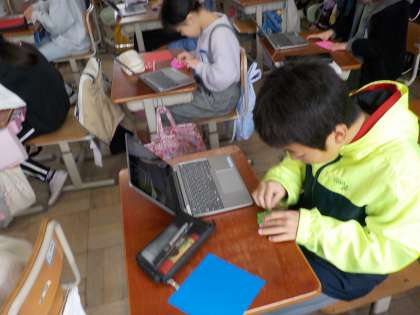 GIGA端末を使って,いろいろな花の種類の折り方を調べていました。