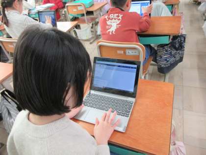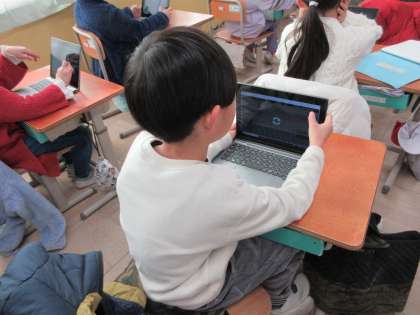 スキルタイムで、GIGA端末を使ってミライシードの問題を解きました。問題を解くことで、すすんで学習の復習ができました。
