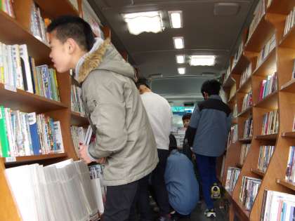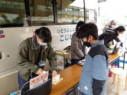 今日は月に1度の京都市移動図書館『こじか号』がやって来る日でした。