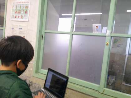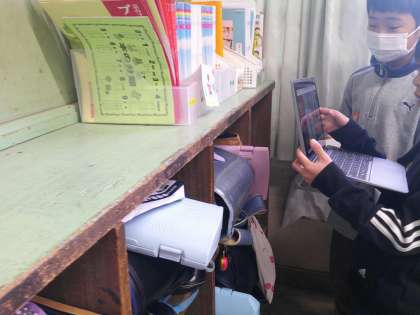 書いた小さな自分を教室の様々なところに置いてGIGA端末で写真を撮りました。