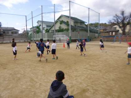 ボールに当たらないようによけたり、相手を狙ったりして楽しみました。