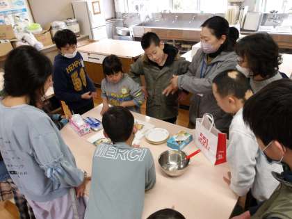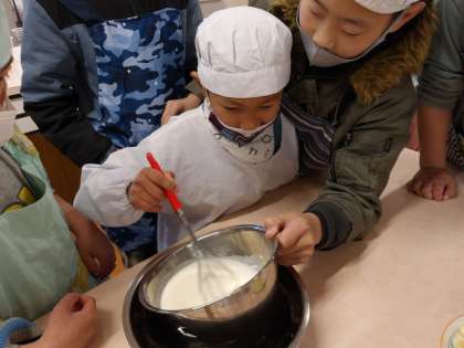 6くみは毎年、6年生おめでとう調理実習に取り組んでいます。今年は、みんなでチョコレートパフェを作りました。
