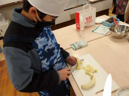 水曜日、みんなでスーパーマーケットで買ったアイスやお菓子、バナナを使って作りました。