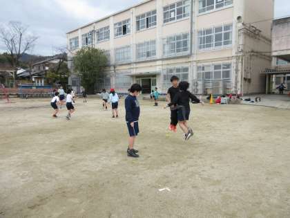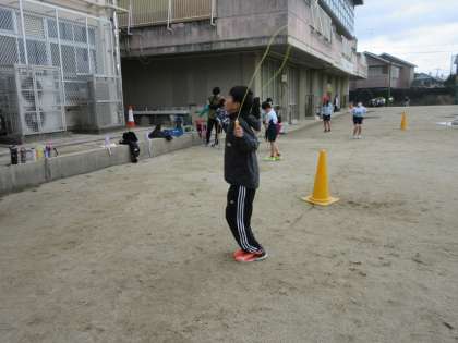 なわとびの運動を頑張りました。一人で頑張ったり、友だちと一緒に跳んだりして運動を楽しみました。
