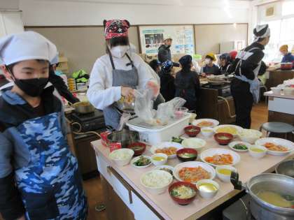 6年生は、家庭科の学習で、体に必要な栄養素の種類と主な働き、料理や食品の組み合わせ、1食分の献立作成の方法、を合わせて考え、調理計画を立てました。そして、実際に必要な材料を買い物に行って購入し、調理する活動をしました。調理方法もばっちりでした。